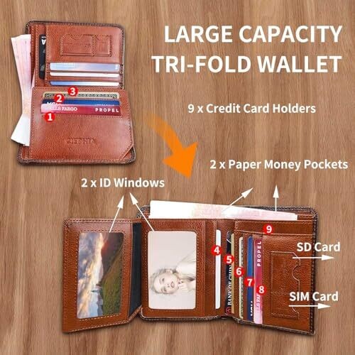 • Heritage Leather Men's RFID Wallet - Slim Tri-Fold with ID Window