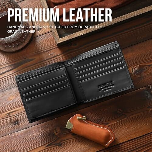KLOMORE Leather Wallet for Men - RFID Blocking Bifold, Vintage Italian Leather