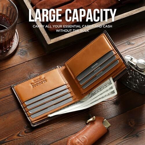 - Spacious design with ample organization options, including a bifold layout that supports easy card access