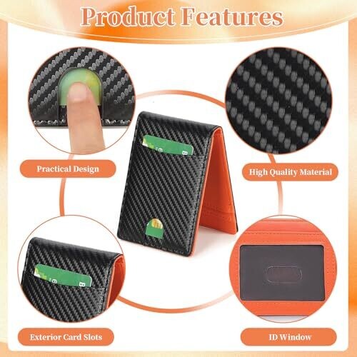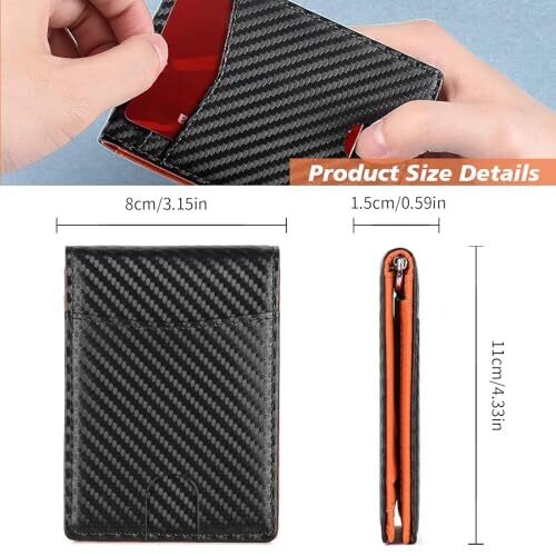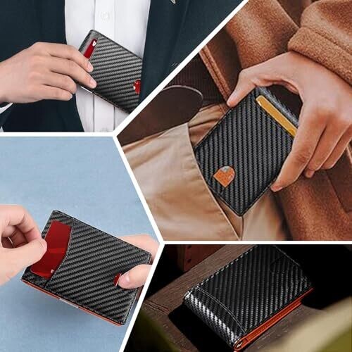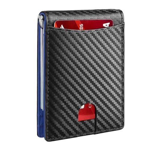 Experience a sleek, minimalist wallet that blends carbon PU leather with a modern silhouette. This slim bi-fold carries 6 card slots and an ID window, with RFID protection and quick-access features for secure, effortless everyday carry in black or blue.