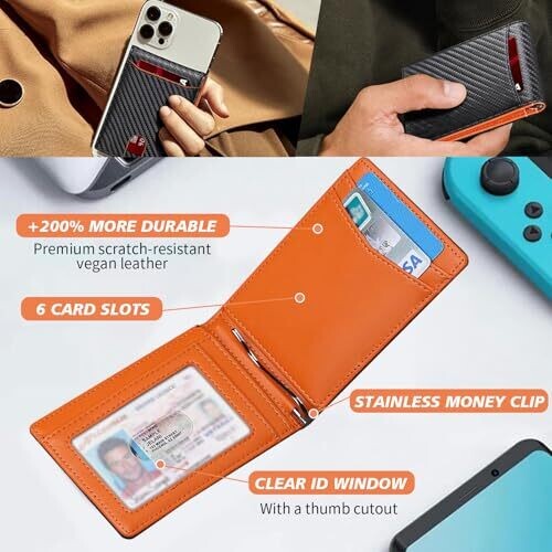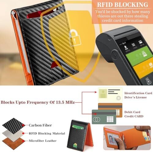 • Slimguard Carbon Fiber Slim Wallet – RFID Blocking Bi-Fold, 6 Card Slots