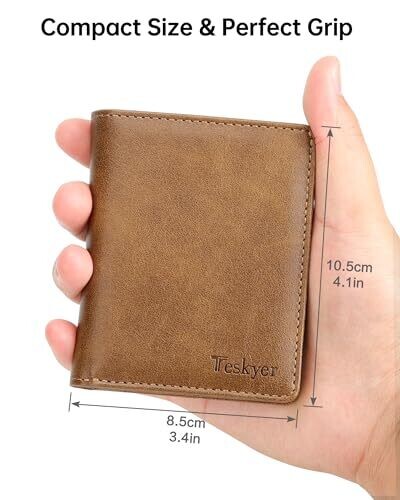 Teskyer Leather Bifold Wallet for Men – Gift Box, RFID Shield, Brown