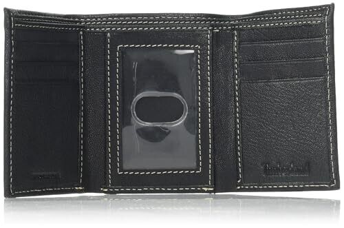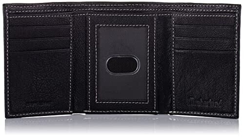 • Timberland Men's Genuine Leather RFID Blocking Trifold Security Wallet in black offers a sleek, professional look with everyday practicality.