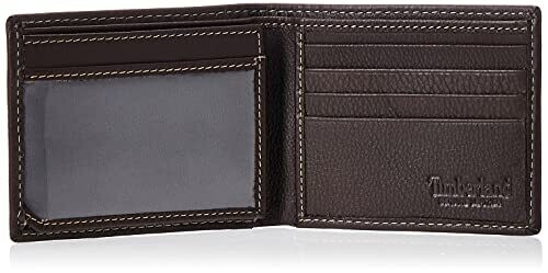 • Timberland Men's Wellington Leather RFID Bifold Commuter Security Wallet in brown amps up everyday carry with rugged leather feel and refined style.