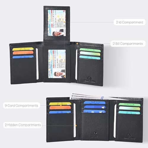 • VALENCHI Genuine Leather Mens RFID Blocking Slim Trifold Wallet with Middle Flap 9 Cards + 2 ID Window + 2 Note Compartments is a premium, compact wallet designed for everyday carry.