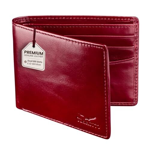 Vintage Leather Men’s Slim Bifold RFID Wallet – Wax Oil Red, Gift Box Included