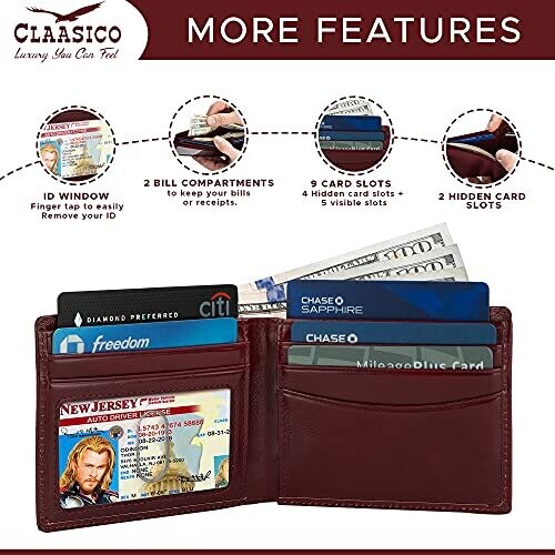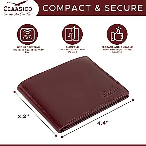 - Small bifold wallet with a sleek silhouette that fits comfortably in pockets without bulk.