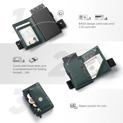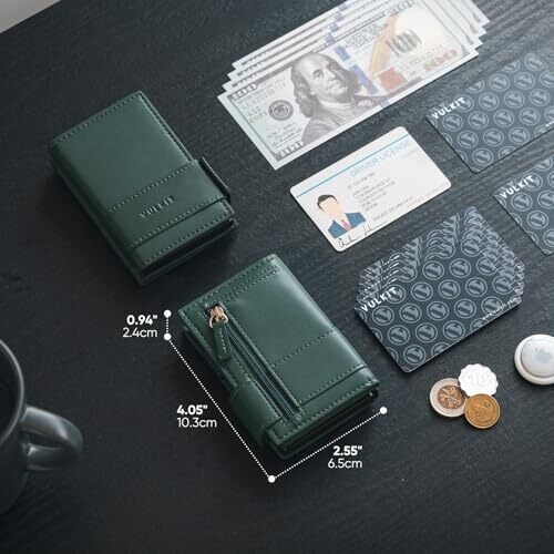 • VULKIT Card Holder Bifold Pop Up Leather Wallet for Men – RFID Blocking, 9 Cards, Green