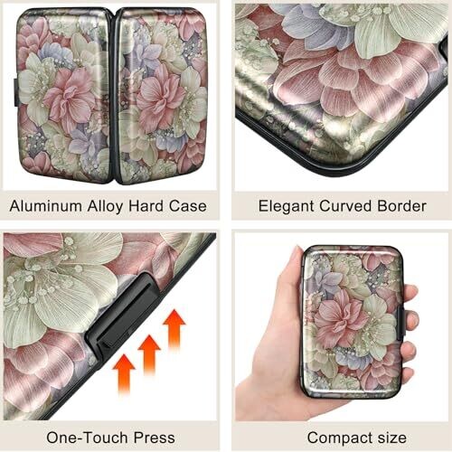 ELFISH Mini RFID Aluminum Wallet Credit Cards Holder Business Card Case Metal ID Case for Men Women, Happy Flower