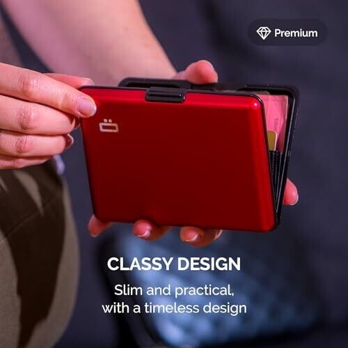 Ögon Designs - Big Stockholm Aluminum Wallet - RFID Blocking Card Holder - Up to 10 Cards and Banknotes (Red)