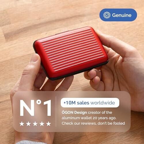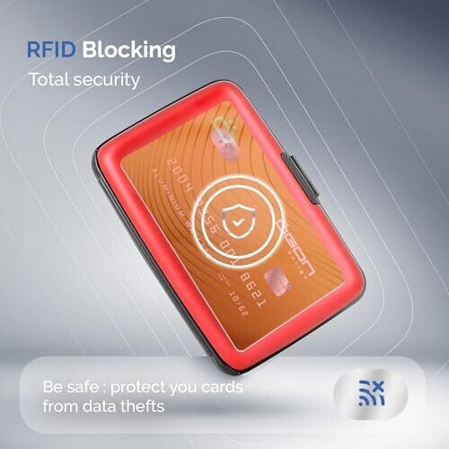 Minimalist aluminium card holder that protects your cards and data with RFID shielding and demagnetization. Compact, light, and durable, it fits any pocket or bag for men and women on the go, with a bold red Stockholm V1 style.