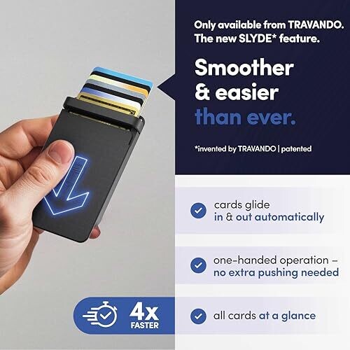 • Travando Slyde Aluminum Card Holder - Slim RFID Blocking Wallet for Men