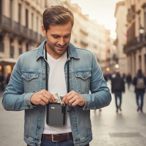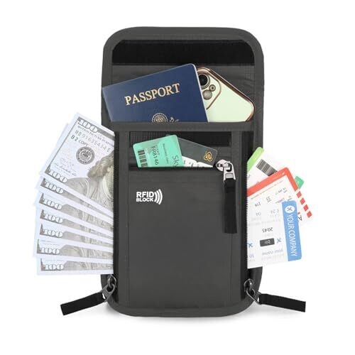 • Adjustable Neck Strap for Comfort: Includes a soft, adjustable neck strap to wear the wallet securely around your neck, allowing hands-free access and all-day comfort on your journey.