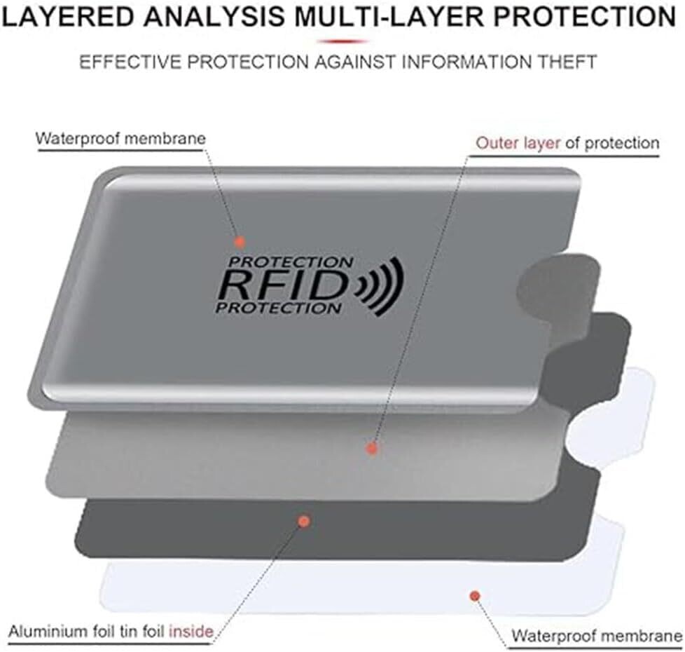 • Keep your essentials safe from unauthorized scans while traveling, shopping, or commuting, with a slim profile that fits easily into wallets and purses.