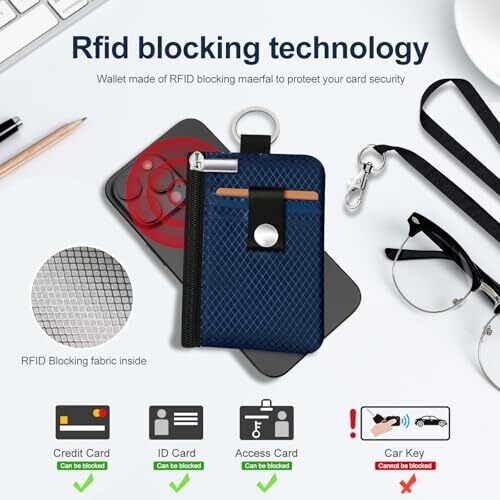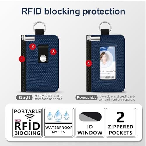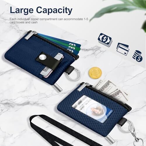 Meet the CCUMI Minimalist RFID Blocking Small Wallet with ID Window in Dark Blue, a sleek, travel-ready carry that fits cards, cash, and essentials. Durable water-resistant nylon, two zippered compartments, ID window, and a included lanyard for versatile wear.