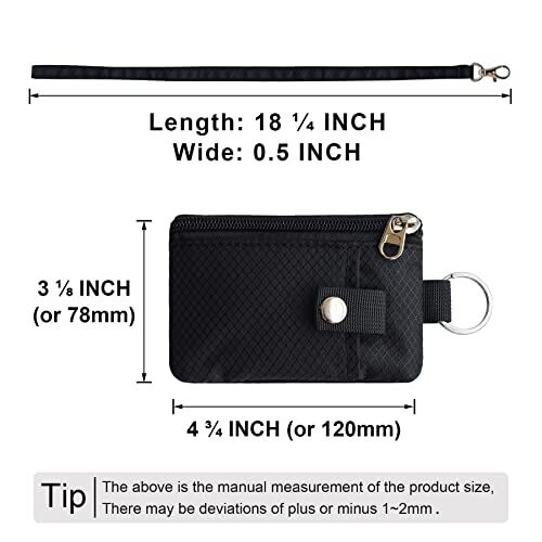 4.75" W x 3.12" H (120 mm x 78 mm). Lanyard length