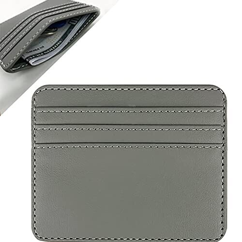Tunghey Credit Card Holder Wallet offers ultra-slim, minimalist design with RFID protection. Crafted from premium gray leather, it fits 3 card slots and a central pocket, stays lightweight in pockets, and suits both men and women.