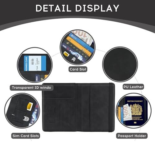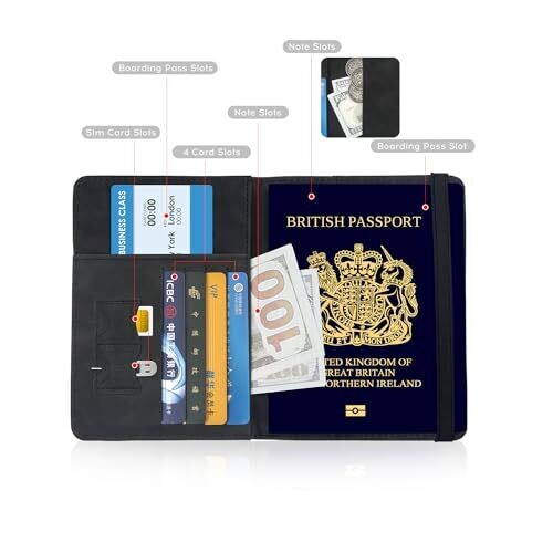• Multiple storage slots secure passports, business cards, credit cards, and boarding passes in one convenient place, making your travel process faster and more organized.