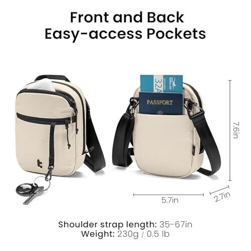 Front dual pockets for earphones and keys, back slip pocket for boarding passes and passports, and a spacious main compartment for daily essentials.