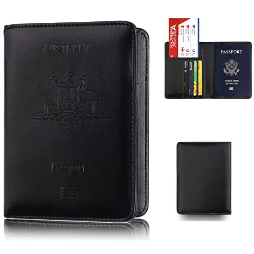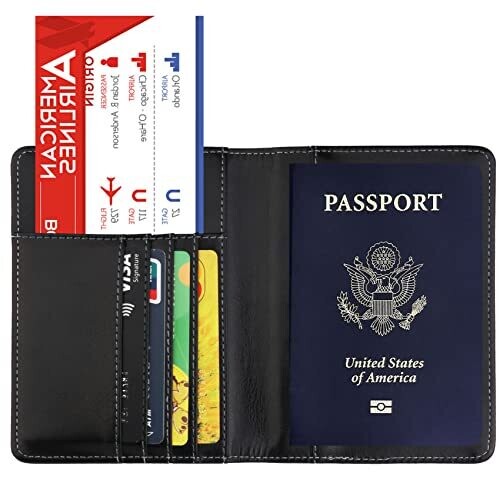 • Premium PU leather passport holder with built-in RFID blocking to protect personal information from unauthorized scanning.