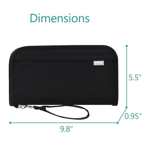 Protects your personal data with built-in RFID blocking while offering space for 2 passports, 5 cards, tickets, money, a pen, phone, and more. Durable, waterproof nylon with foam lining; detachable wrist strap for easy, hands-free travel.