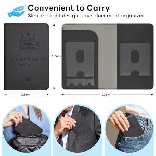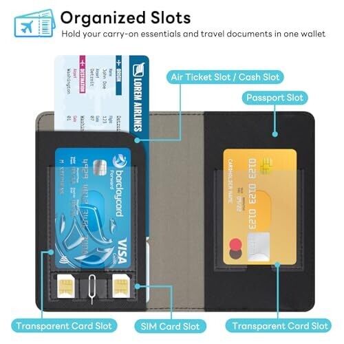 • Smart organization with dedicated slots for passports, cards, and travel essentials.