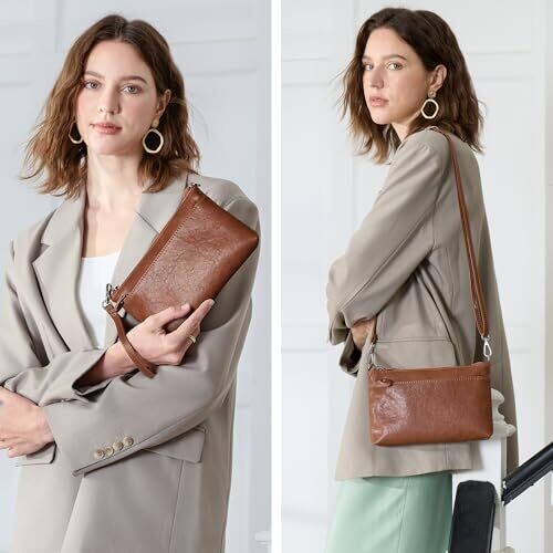• Experience sophisticated style with the befen Women’s Genuine Leather Crossbody Wallet, a compact crossbody clutch that blends elegance with everyday practicality.