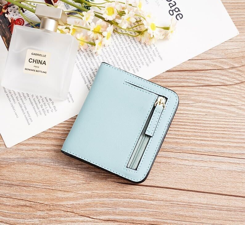 • Brand Lake Blue Ultra-Thin RFID Wallet for Women: Sleek Leather Minimalist
