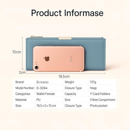 Experience everyday luxury with a slim, customized blue leather RFID wallet for women. This travel-ready purse keeps essentials organized with 11 card slots, ID window, cash pockets, and a coin zipper, while blocking 13.56 MHz RFID scans for peace of mind.