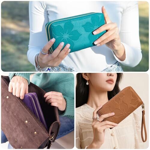 SENDEFN Genuine Leather RFID Wristlet & Clutch with Zip Pocket & Coins