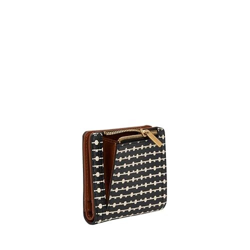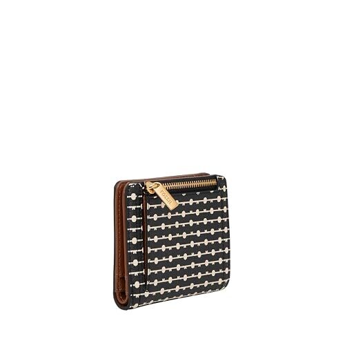 Fossil Women's Logan Leather RFID-Blocking Bifold Wallet for Women, Black Stripe