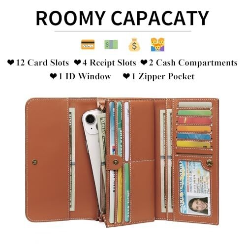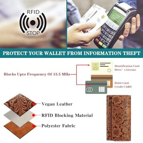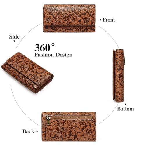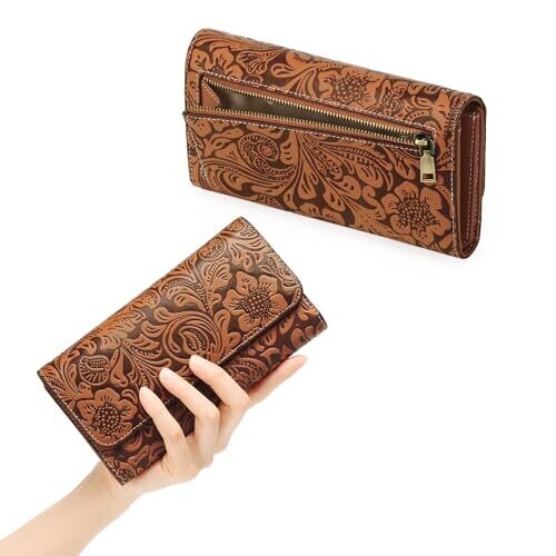 Keep cards secure with RFID blocking in a chic GOIACII clutch wallet. This long purse features vegan leather with an embossed flower design, organized slots, and a roomy bill compartment. Durable, vintage brown, perfect for daily errands or special occasions.