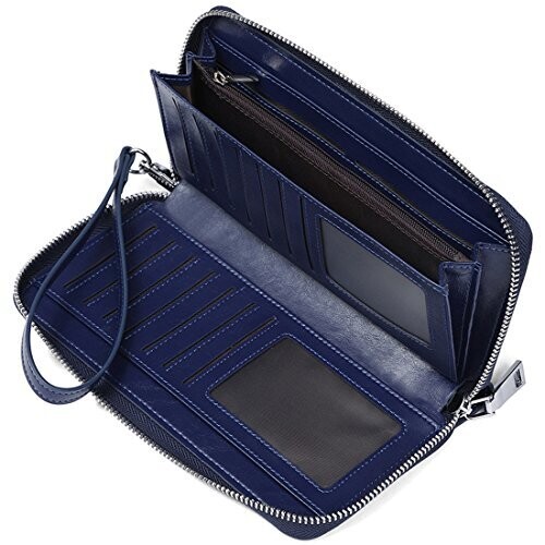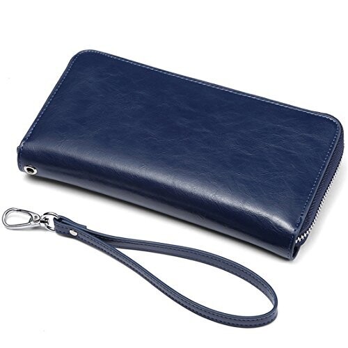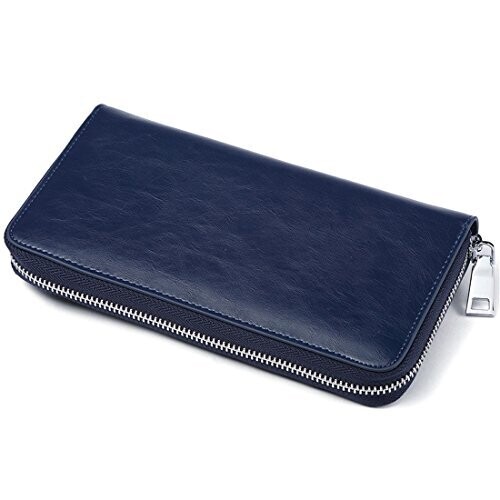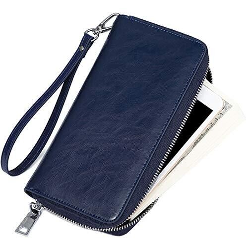 • JEEBURYEE RFID Blocking Wallets for Women - Leather Zip Wristlet, Blue, Large