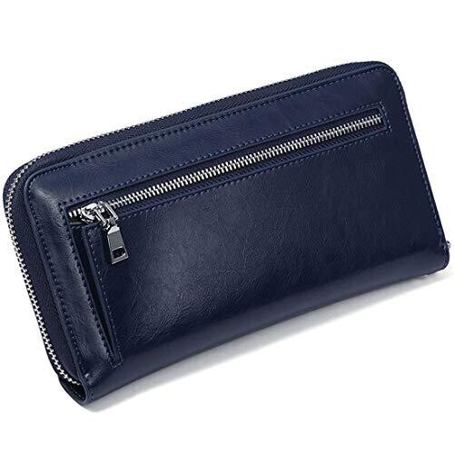 • JEEBURYEE Wallets for Women RFID Blocking Leather Zip Around Wristlet Clutch Travel Purse, Blue, Large