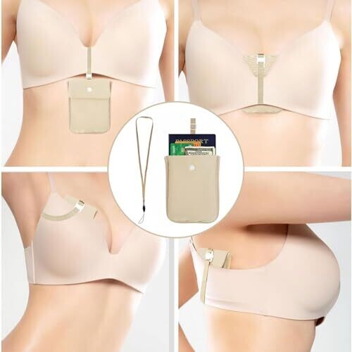 • Experience secure, stylish travel with the RFID-Blocking Hidden Bra Wallet for Women from Jotron.