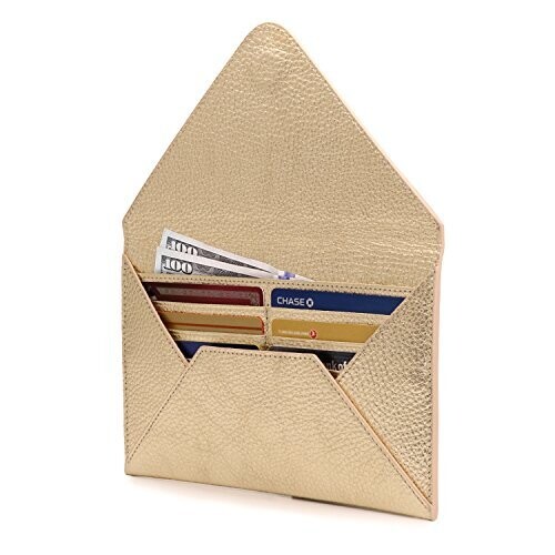 Clutch combines a wallet and card holder with room for cards, money, and a cellphone.