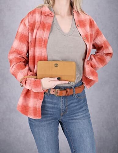 • Timberland Women’s Leather RFID Zip Around Wallet Clutch with Wristlet Strap in Wheat (Nubuck) offers a stylish, brand-backed solution for organized everyday carry.